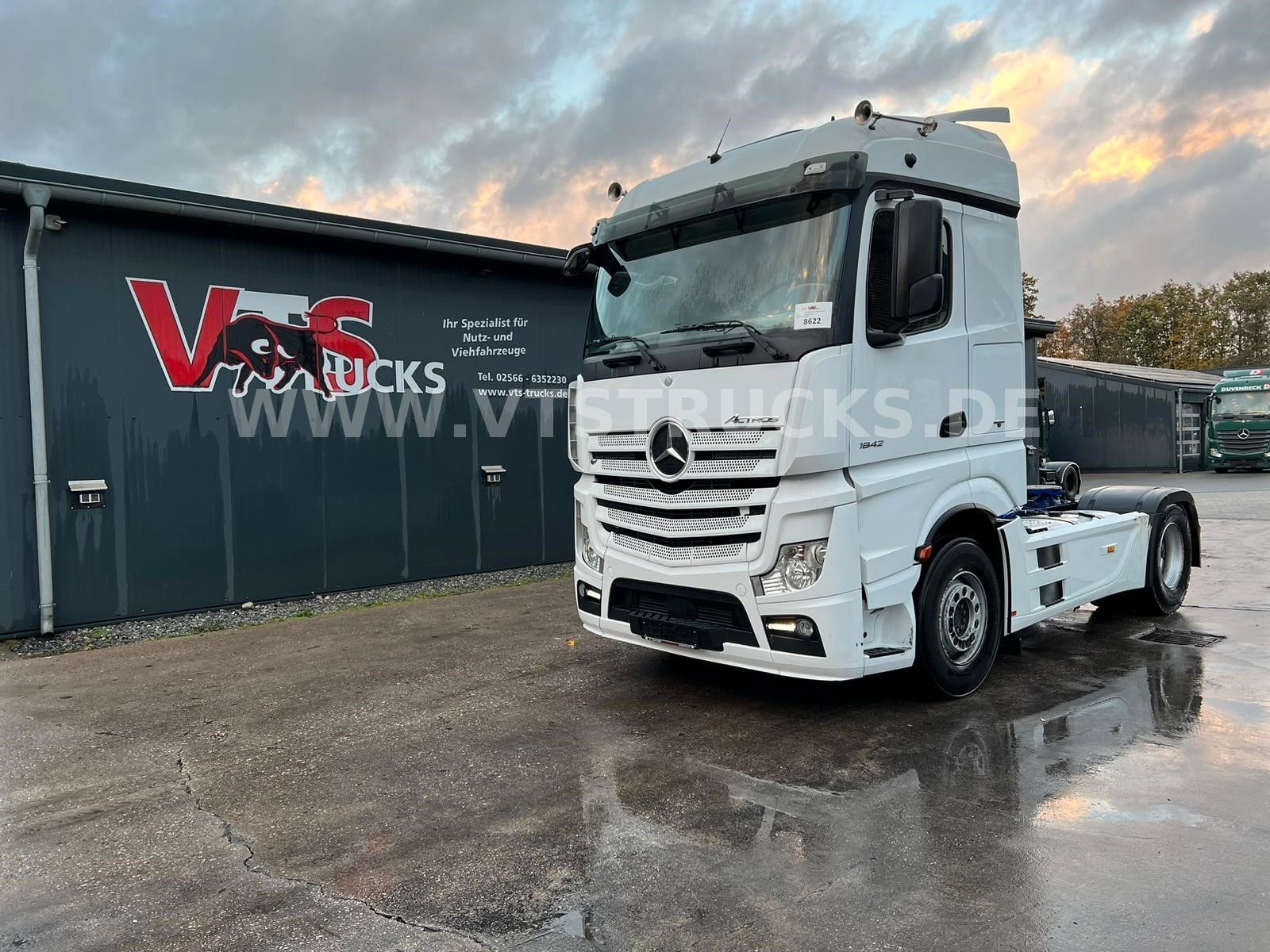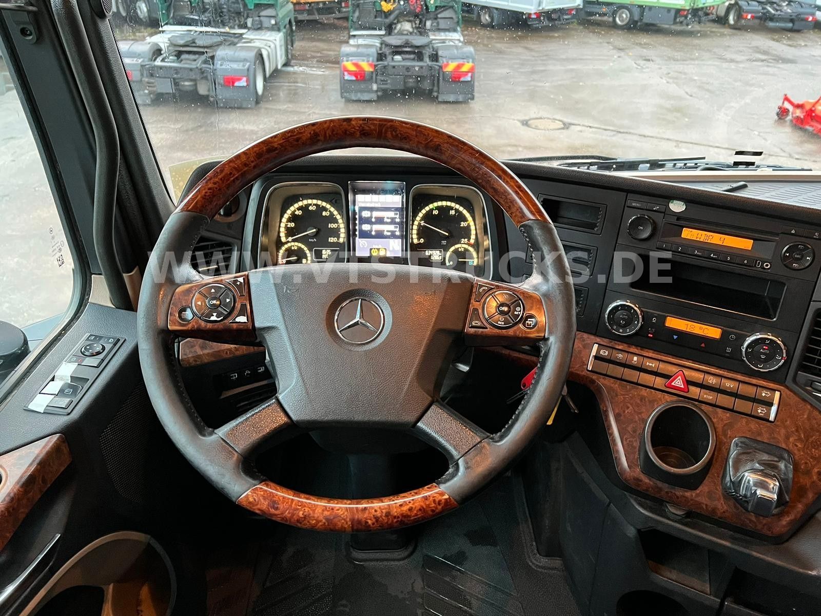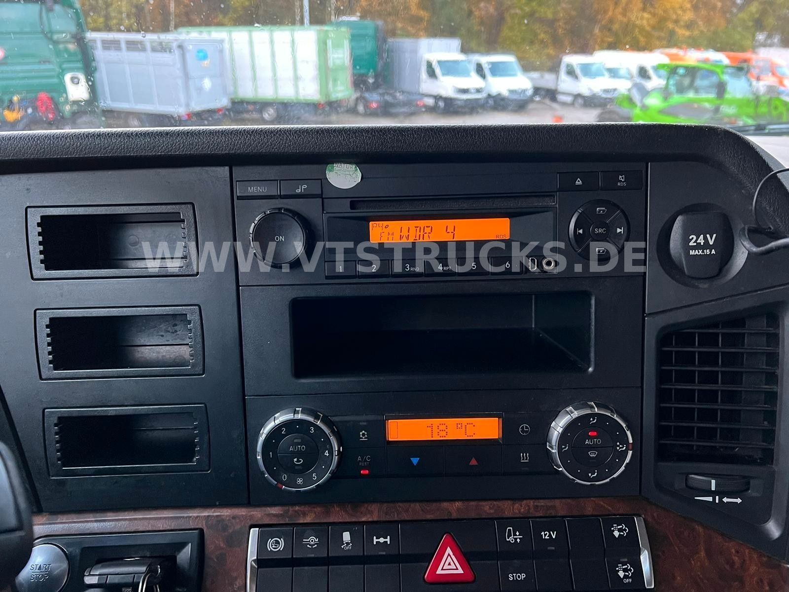 Multi-function steering wheel, radio with hands-free function, seat heating, parking heater, stationary air conditioning, automatic climate control, comfort seat, wood/leather steering wheel, roof hatch, refrigerator, sleeper, hill start assist, lane-keeping assistant, rear axle differential lock, traction control, roof spoiler, side trim, air horn, fog lights, sun visor, internal vehicle number: 8622. Errors and prior sales reserved.