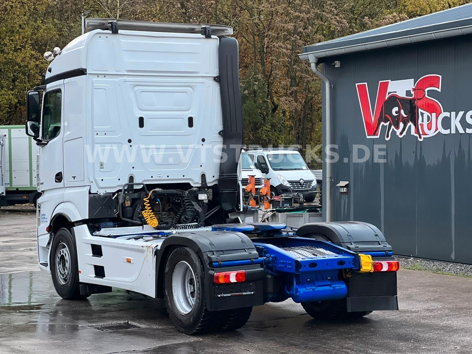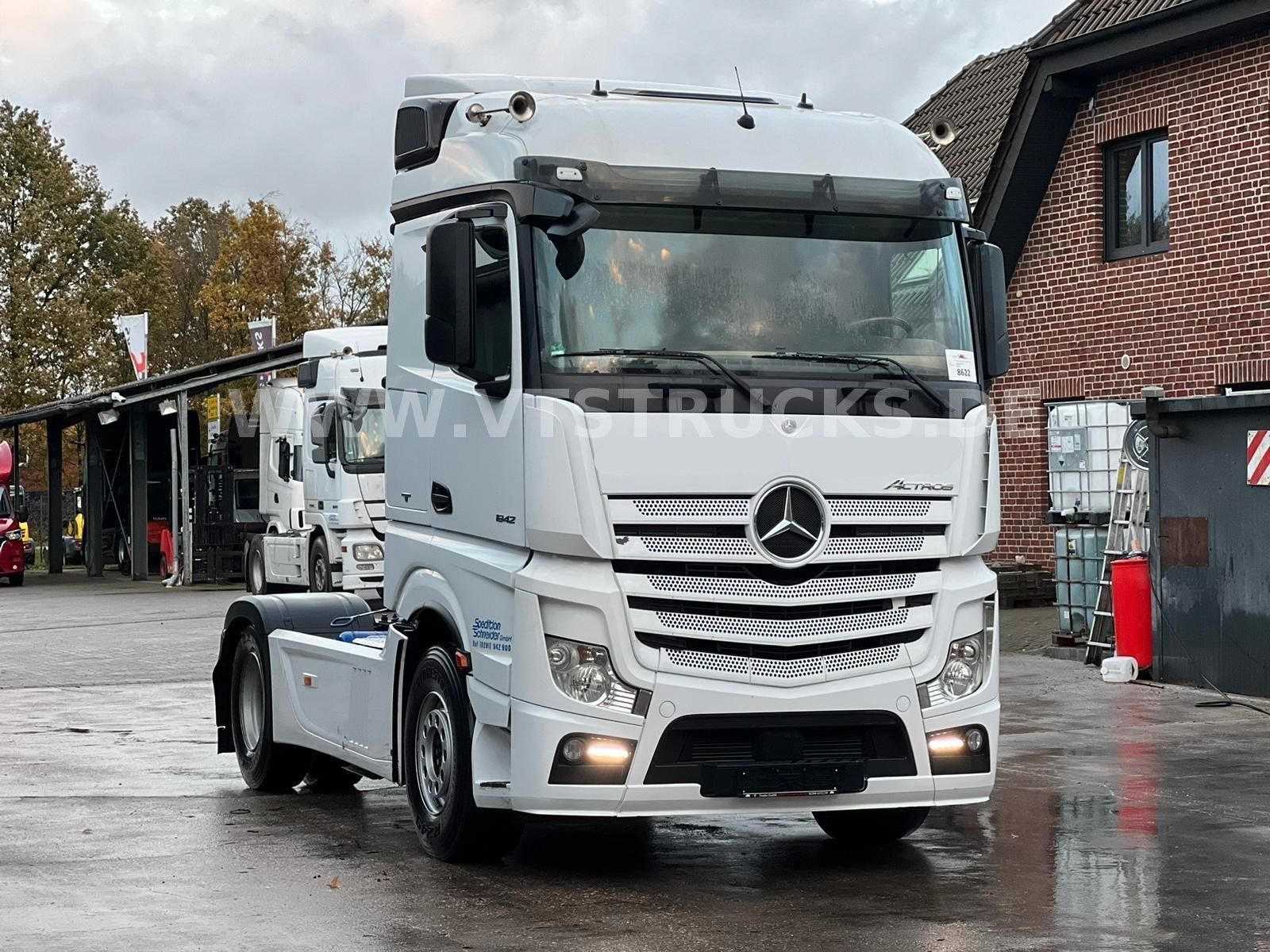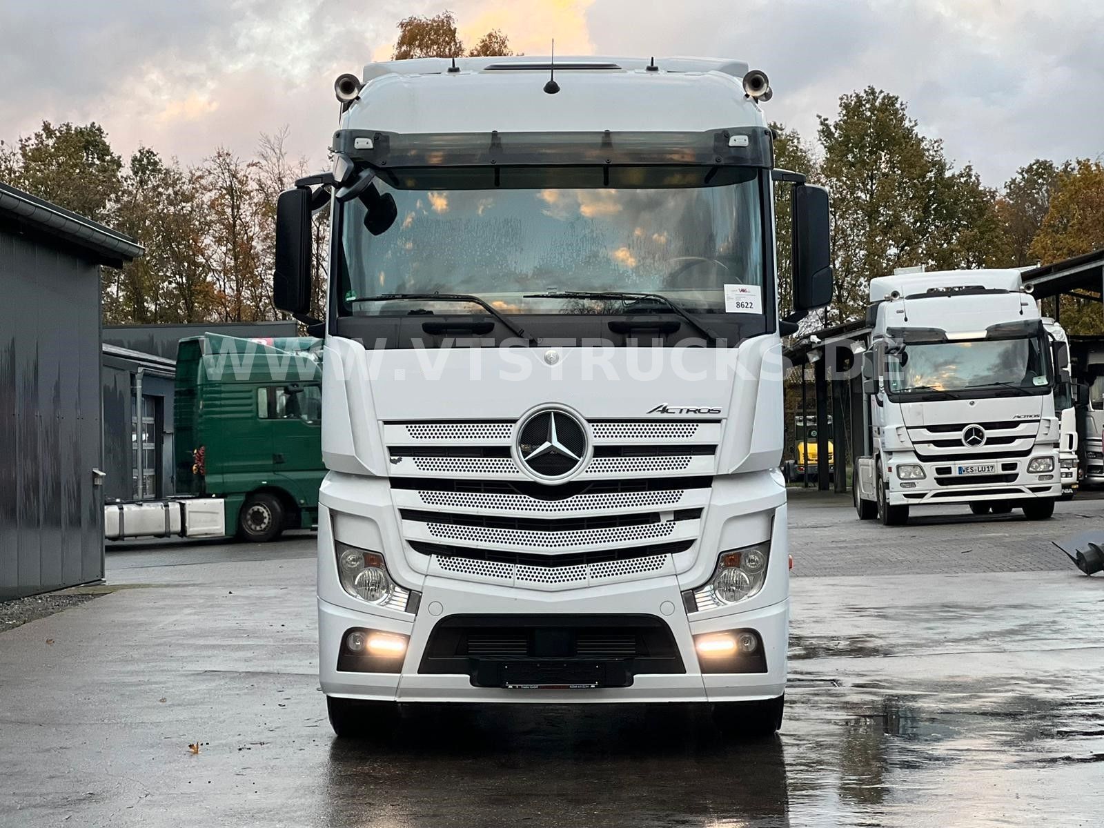 Multi-function steering wheel, radio with hands-free function, seat heating, parking heater, stationary air conditioning, automatic climate control, comfort seat, wood/leather steering wheel, roof hatch, refrigerator, sleeper, hill start assist, lane-keeping assistant, rear axle differential lock, traction control, roof spoiler, side trim, air horn, fog lights, sun visor, internal vehicle number: 8622. Errors and prior sales reserved.
