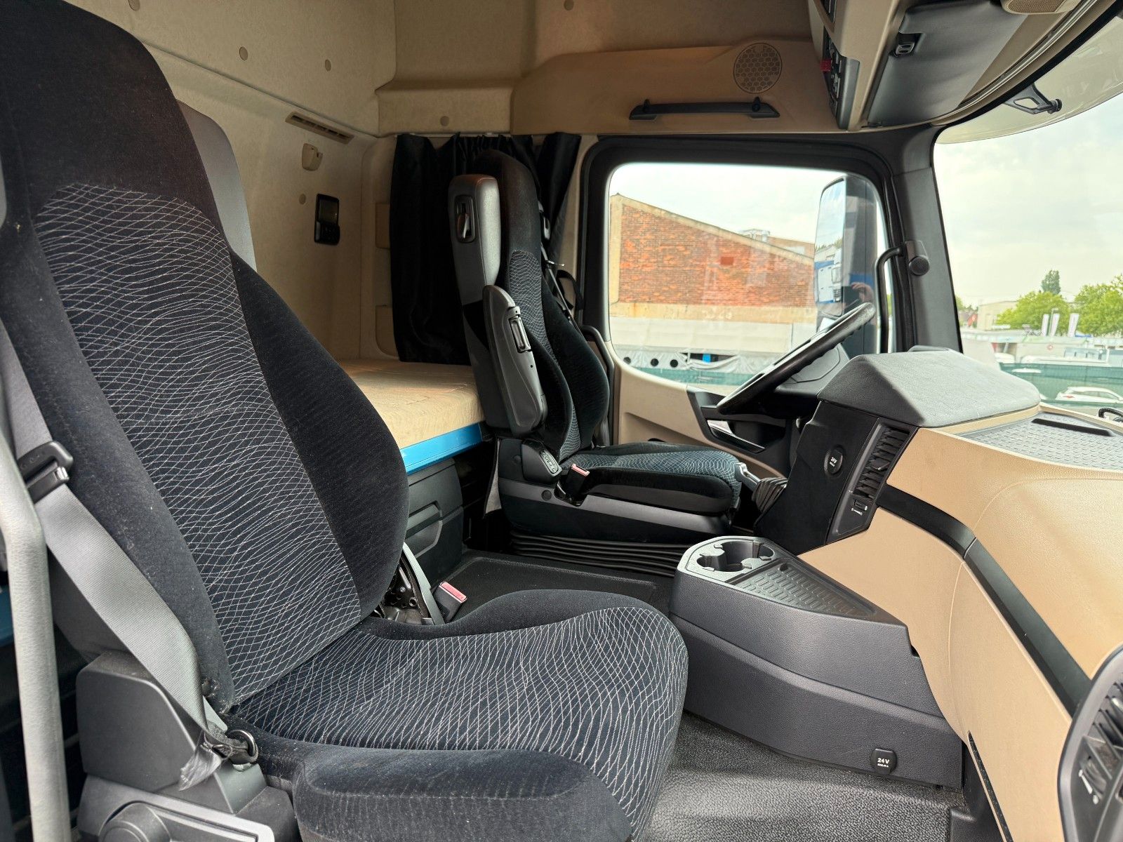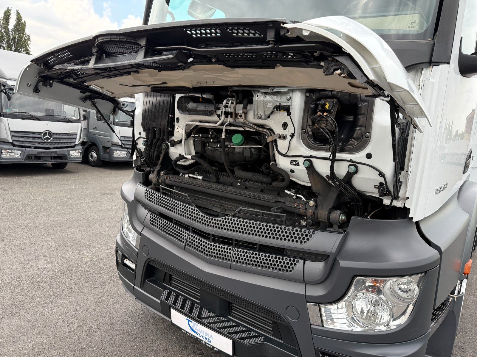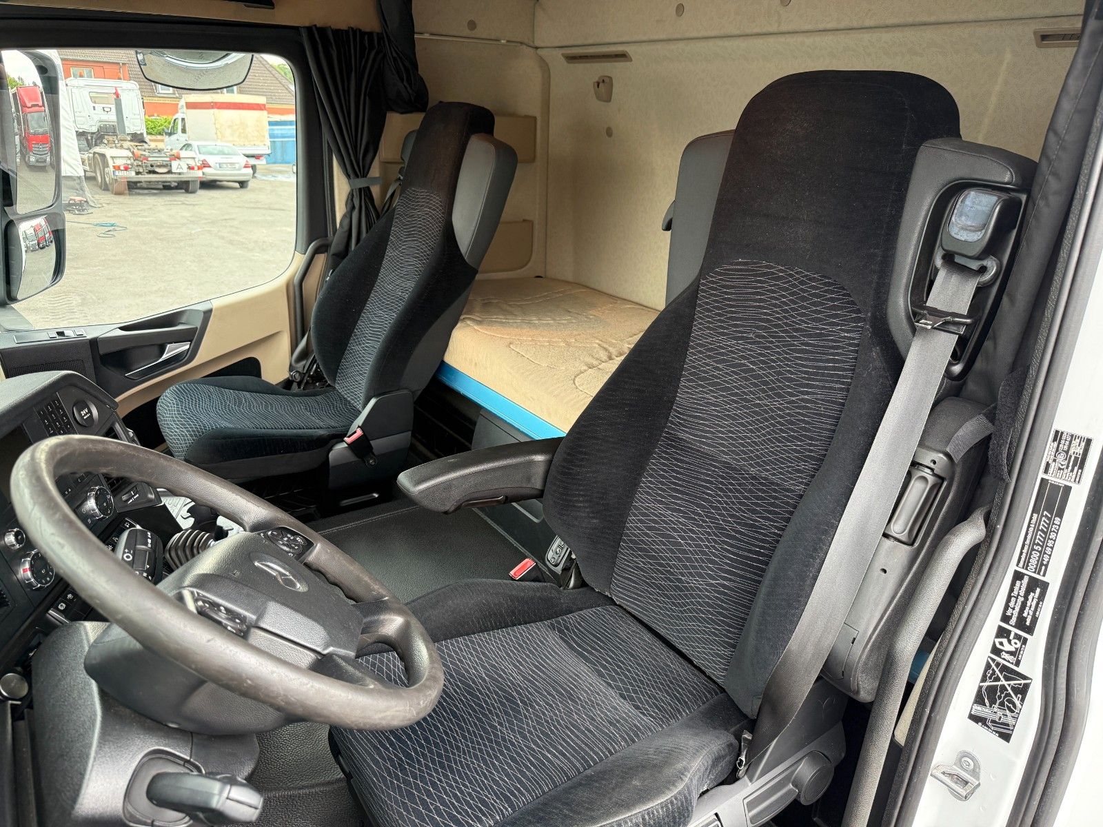 Mercedes-Benz Actros 1843 / Retarder / L StreamSpace, German vehicle from 1st hand, accident-free, original color, non-smoker, service history available, COC documents present, audio system: CD radio (Bluetooth), driver’s cab floor with engine tunnel 170 mm, Fleetboard vehicle computer, tinted windscreen, info-display 10.4 cm with additional display, integral rear, fuel tank: 510 L aluminum, air intake behind the cab, roof air guide (lockable) and side, mounting plate / saddle plate 40 mm for coupling, tires: good condition, tires: 315/70 R22.5, retarder, low-maintenance coupling, driver’s cab seats: driver’s seat with comfort air suspension, external sun visor, additional 24V socket in passenger footwell, Fleetboard preparation, emission standard EURO 6, axle configuration: 4×2, front axle load 7.5 t, Actros 4, trailer socket 24V / 15-pin, work lights, exhaust to the right outside, outside mirror electrically adjustable and heated, differential lock on rear axle, steel air reservoir, medium air unit, cab: width 2.30 m, cab: L StreamSpace, cab: steel-sprung, comfort, suspension: leaf / air, front axle: aluminum, front springs 7.5 t, 1 leaf, electric window lifters, generator 100 A, transmission 12-speed – type: G 211-12, urea tank (AdBlue): 60 L, rear axle crown wheel 440, body / structure: tractor unit, comfort bed below, comfort locking system, communication interface, 3-part fenders, radiator shutter, adjustable steering pump, 2-stage air compressor, engine 10.7 L – 315 kW R6 Diesel (OM 470), engine brake, engine compartment encapsulation, ramp mirror, waste heat recovery, disc brakes front and rear axle, seat cover / upholstery: fabric, cab seats: passenger functional seat, driver’s seat back foldable, voltage converter 24V / 12V 10 A, front splash guard, front axle stabilizer, external storage flap left, socket in cab 24V, tachograph / EU control device, door extension for cab, aerodynamically shaped underbody fairing, underride protection front, CB radio preparation, toll recording preparation, front axle droop, regulated water pump, additional heater (water), 2 keys, permissible total weight 18,000 kg, empty weight 7,391 kg, payload 10,609 kg.