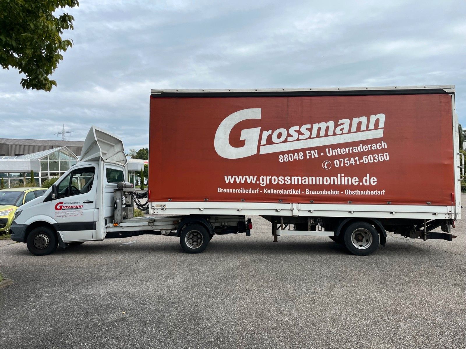 Trailer with sliding tarpaulin from 09/2010 with Dautel LBW 1000 kg from Karosserief.Biberach SBC-6.5L, dimensions: 6750x2450x2650 cm, payload: 3520 kg, air suspension, tire condition 50-60%.