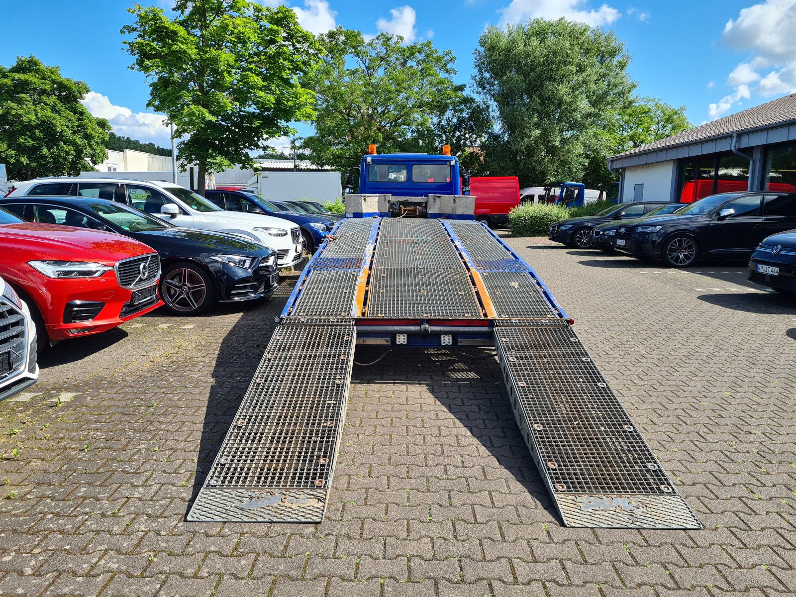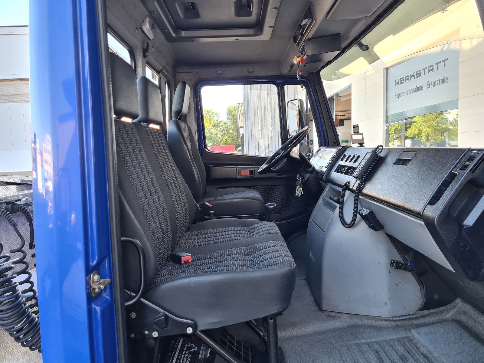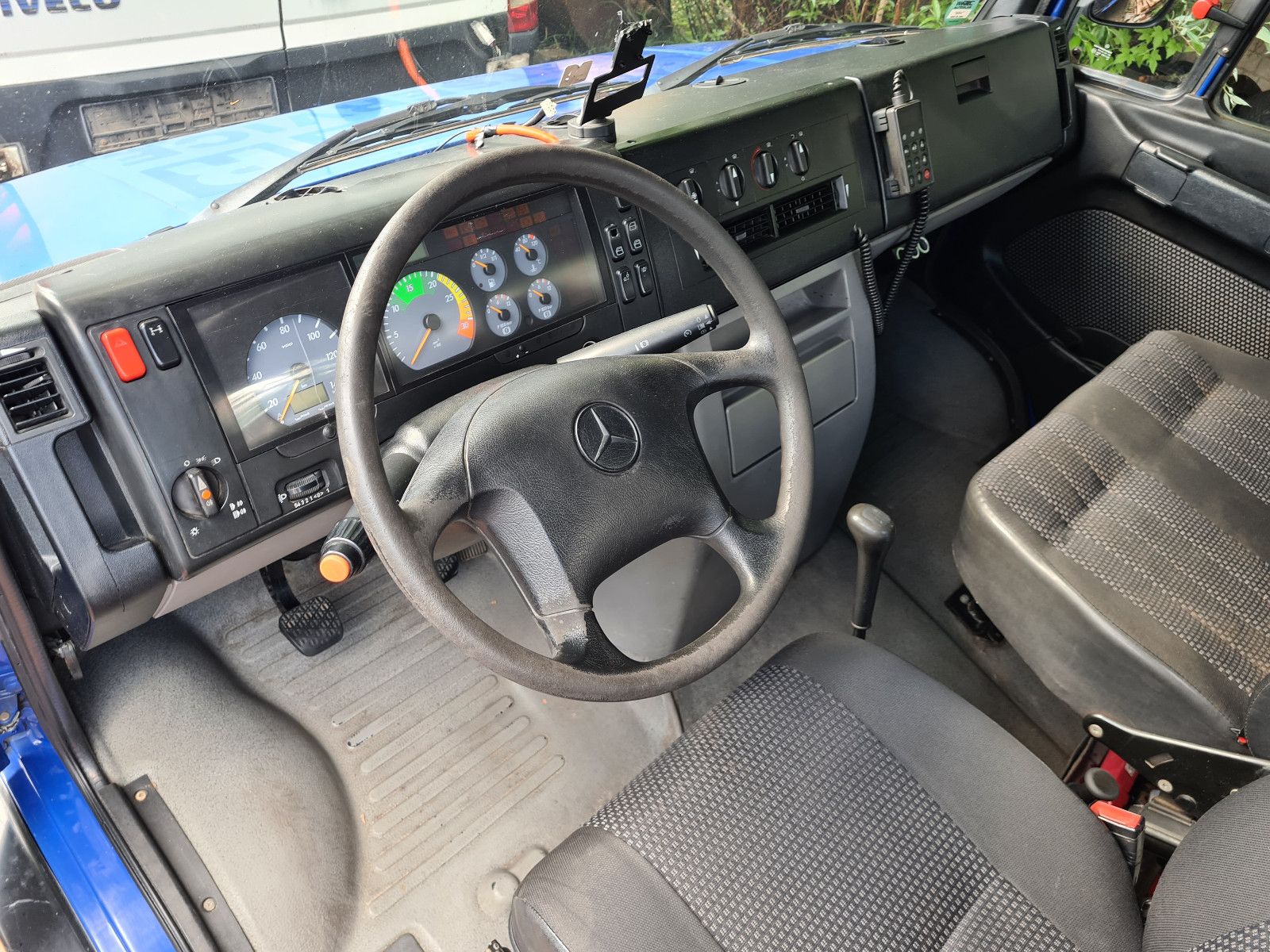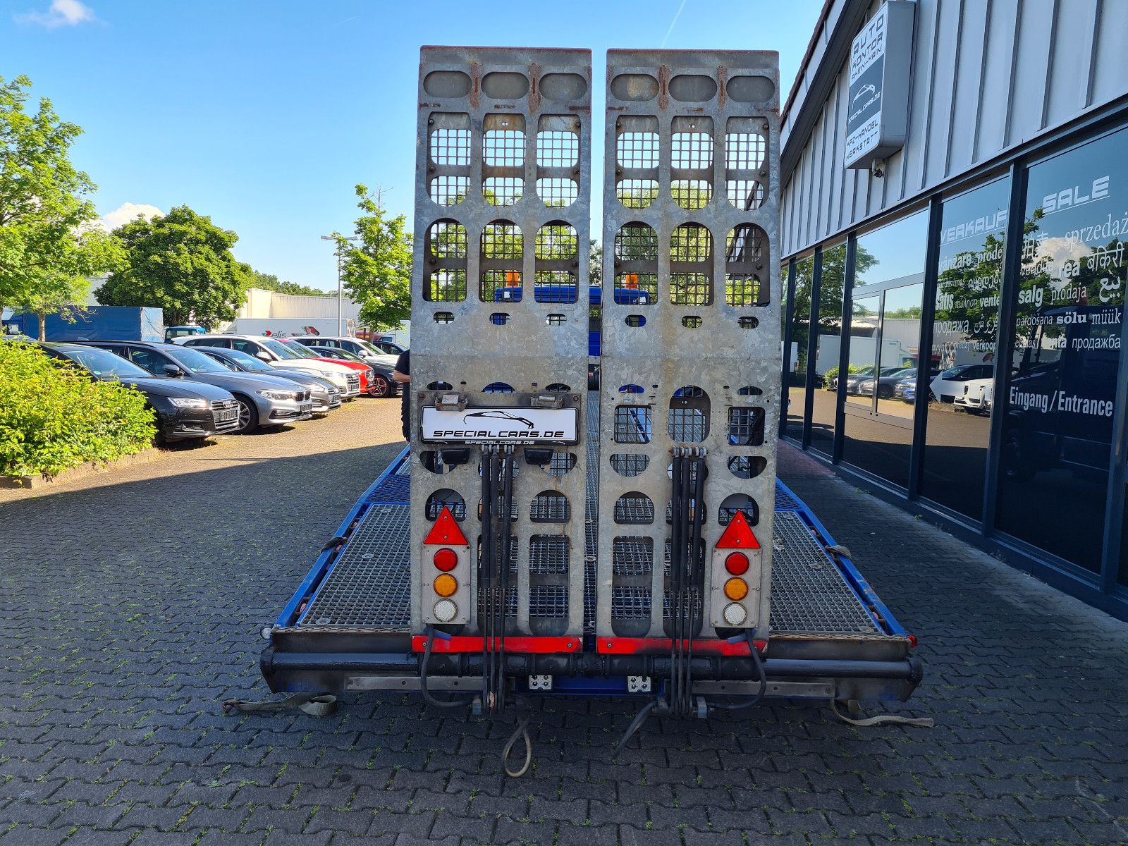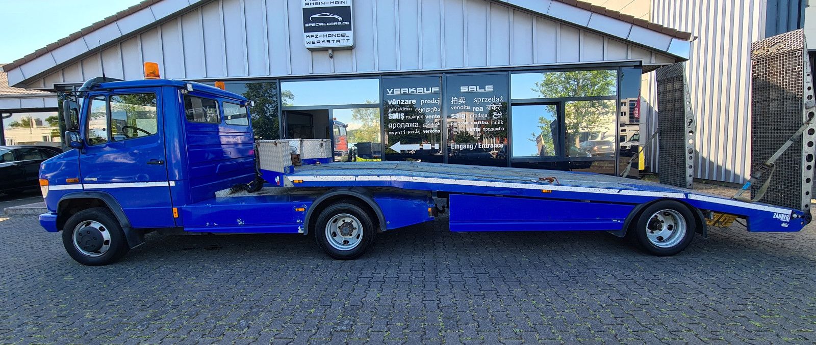 MB Vario 816 tractor unit + Zanner low-loader/machine transporter – requires category C license, 3-seater, Grammer shock-absorbing seat, cruise control, engine brake, electric windows, electric side mirrors, tilting roof, RC-CD, sun visor, warning lights, 4-cylinder Atego engine 4249ccm – 115kw – Euro 5, 6-speed manual transmission, leaf/air suspension, wheelbase: 3150mm, total weight: 7.49 tons, Zanner low-loader/machine transporter/platform from 11/2013 type: STL 10, air-suspended, mechanical ramps – adjustable sideways – length: 2.05m, width: 0.60m, loading dimensions: length: 6.00m, width: 2.30m, total weight: 9.5 tons, empty weight: 1.98 tons, payload: 7.5 tons, electric winch, storage compartments, additional lighting, and more.